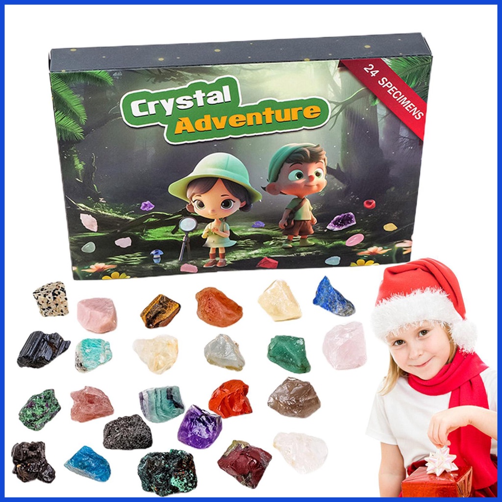 12/24 Pc Ore Christmas Advent Calendar Healing Crystal Mineral Gift Box