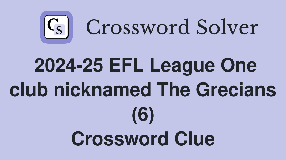 2024 25 EFL League One club nicknamed The Grecians (6) Crossword Clue