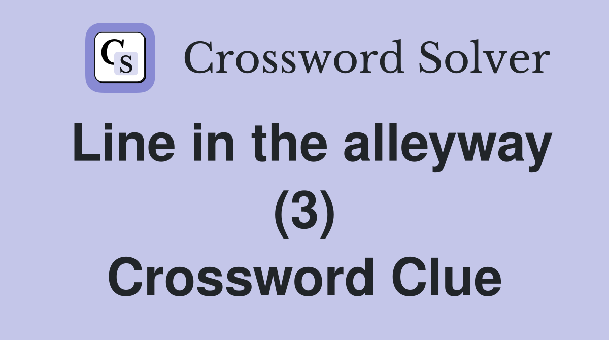 Line in the alleyway (3) Crossword Clue Answers Crossword Solver