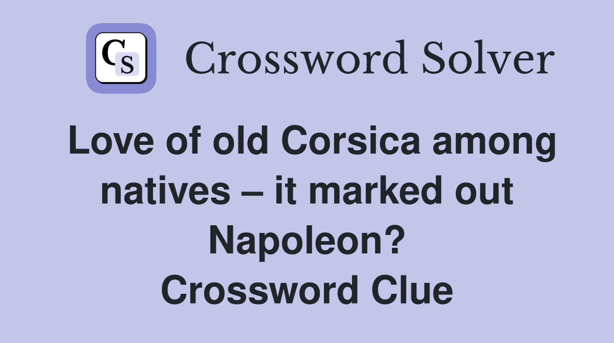 Love of old Corsica among natives it marked out Napoleon? Crossword