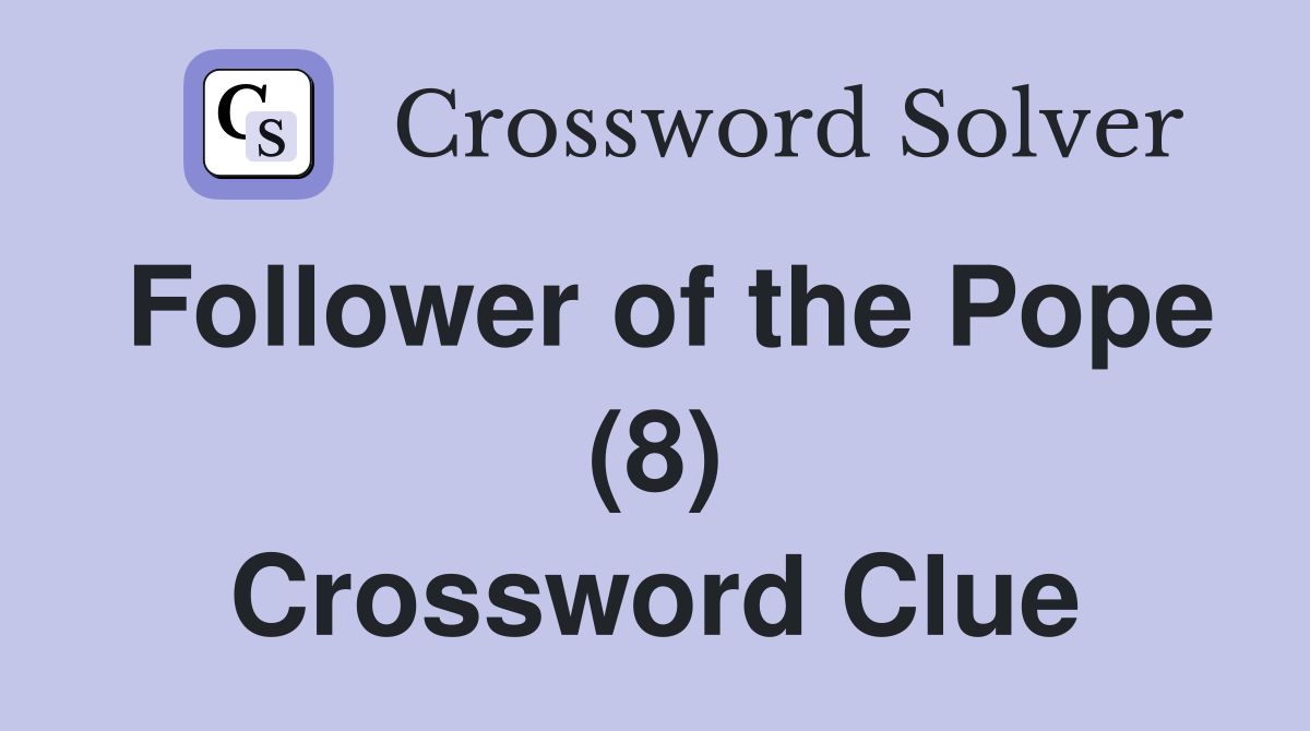 Follower of the Pope (8) Crossword Clue Answers Crossword Solver