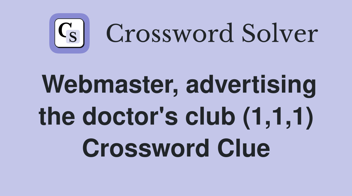 Webmaster advertising the doctor #39 s club (1 1 1) Crossword Clue