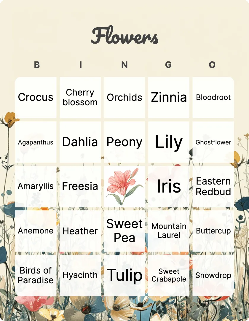 Pin by Şeyma on Nature walk bingo game Bingo sheets Bingo cards