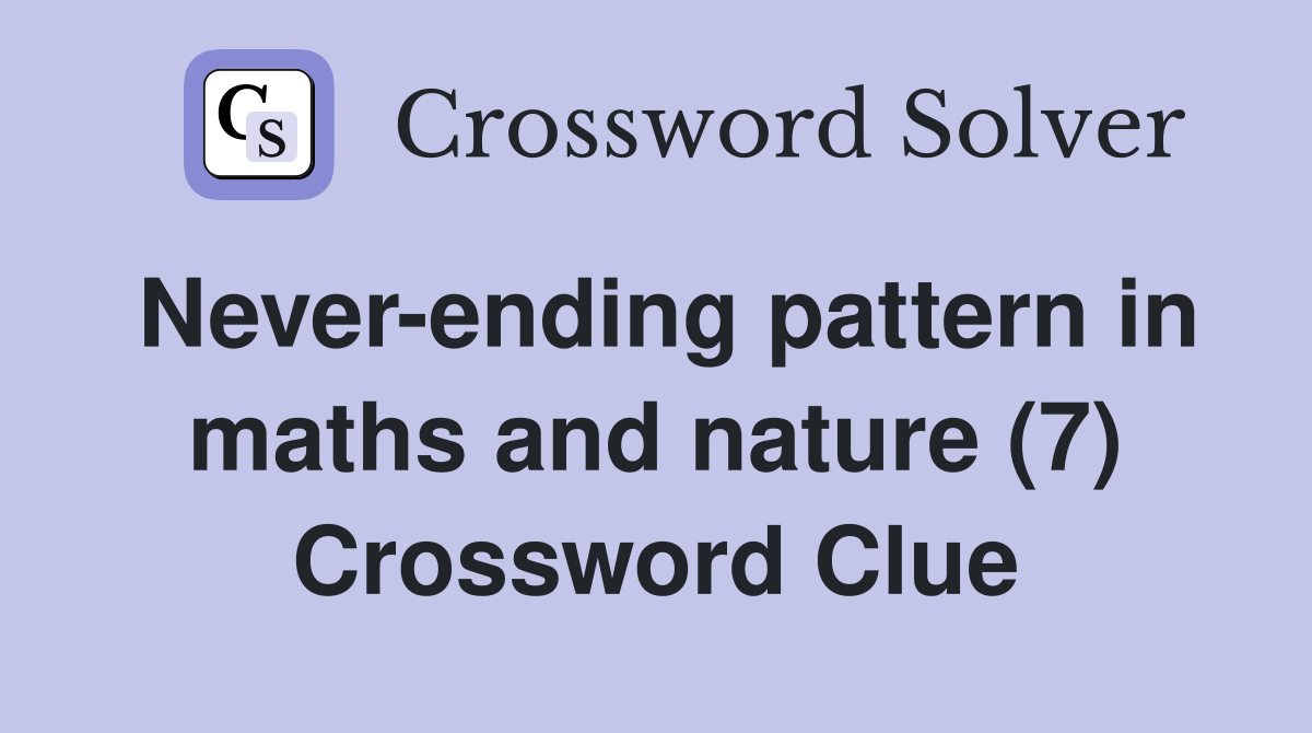 Never ending pattern in maths and nature (7) Crossword Clue Answers