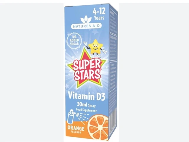 NATURES AID SUPER Stars Vitamin D3 30ml Spray Orange Flavour 4 12 Yrs