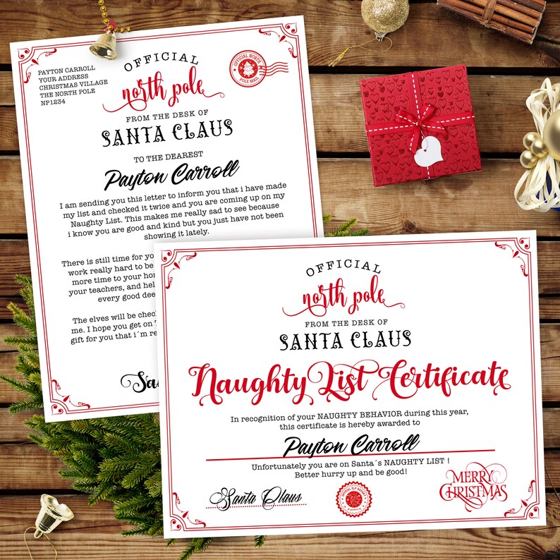 Naughty List Certificate Letter From Santa Father Christmas Etsy