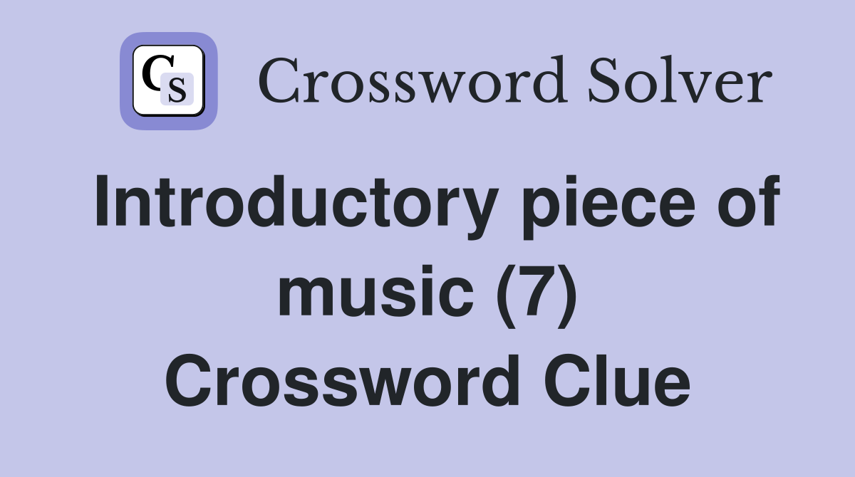 Introductory piece of music (7) Crossword Clue Answers Crossword Solver