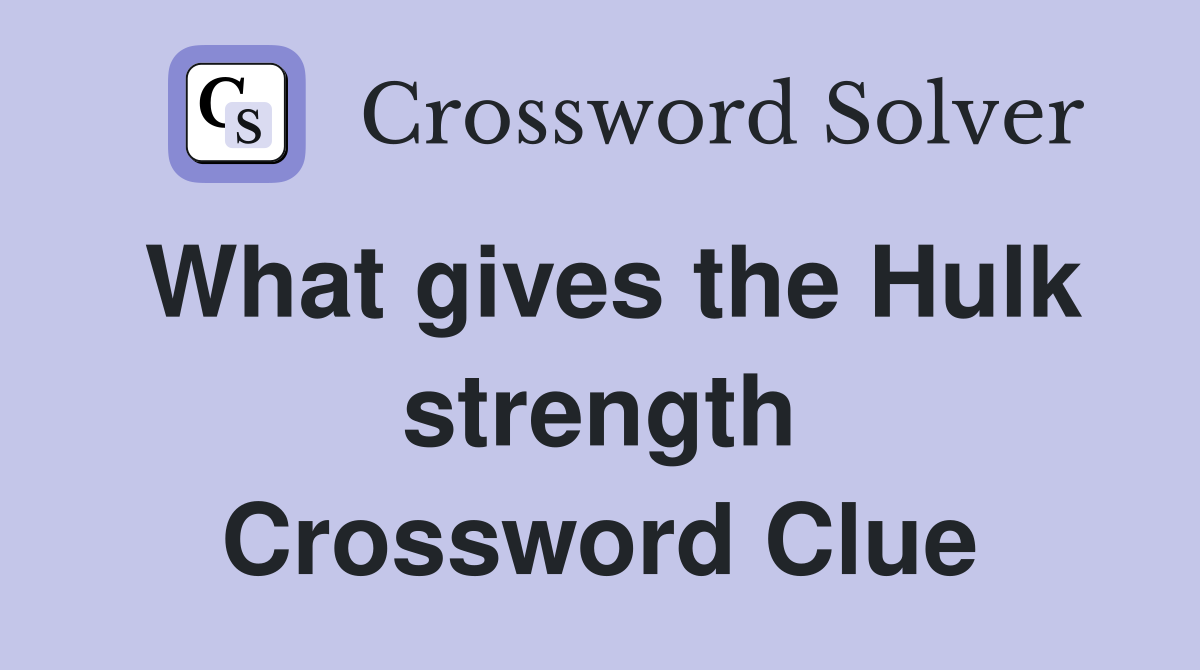 What gives the Hulk strength Crossword Clue Answers Crossword Solver