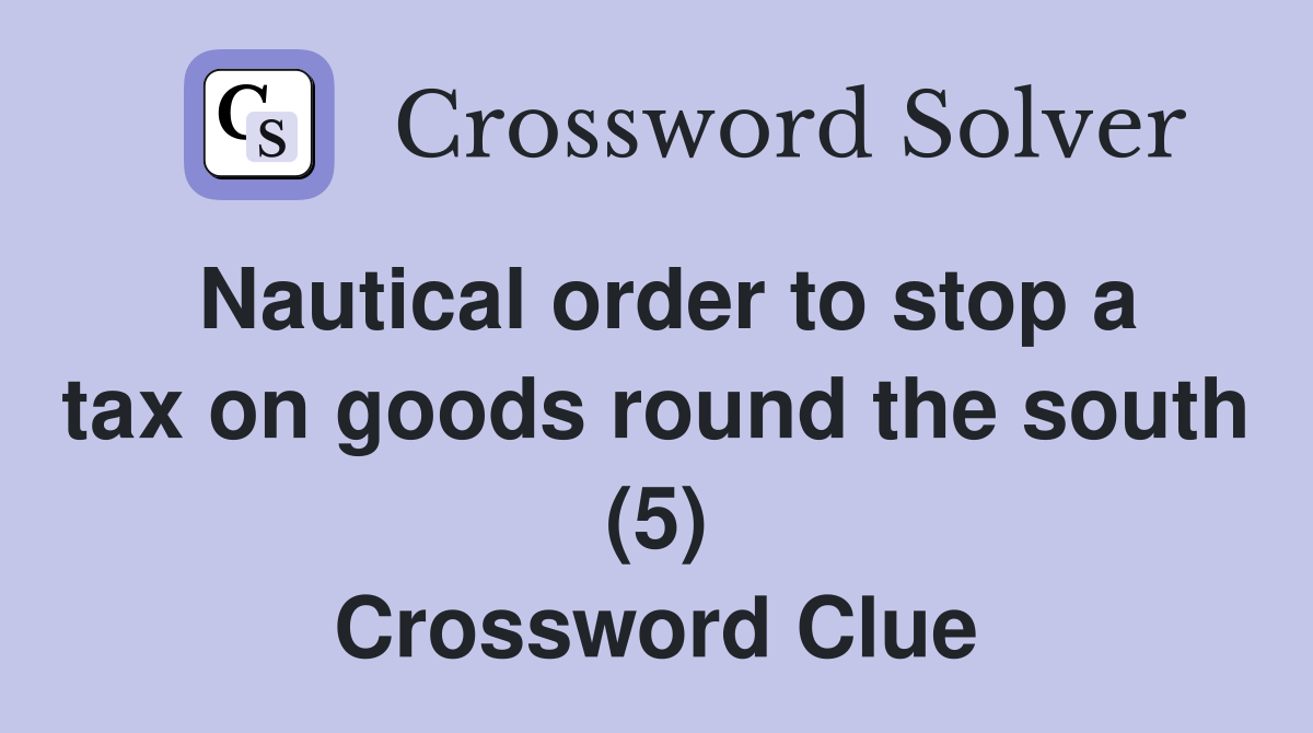Nautical order to stop a tax on goods round the south (5) Crossword