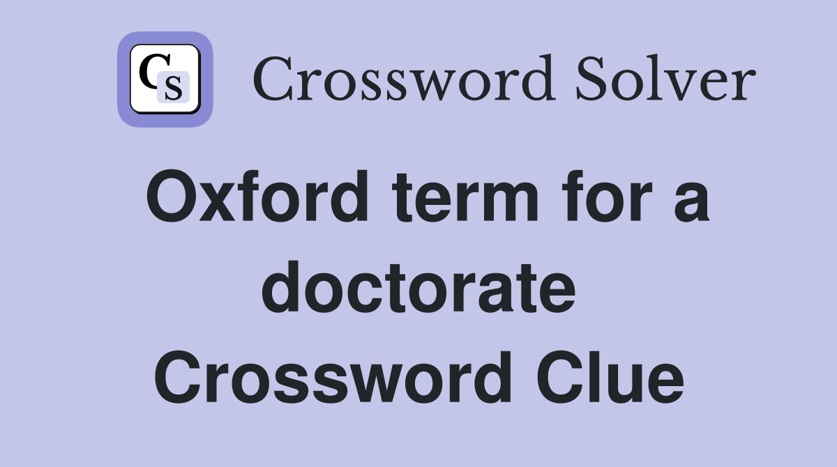 Oxford term for a doctorate Crossword Clue Answers Crossword Solver