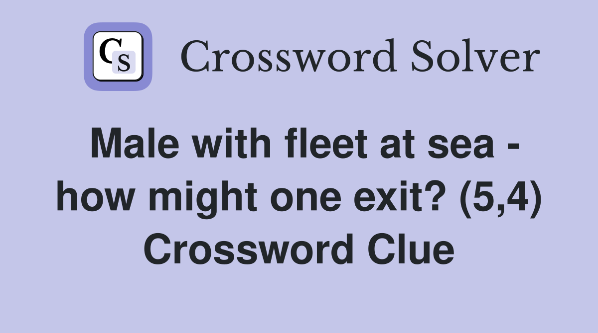 Male with fleet at sea how might one exit? (5 4) Crossword Clue