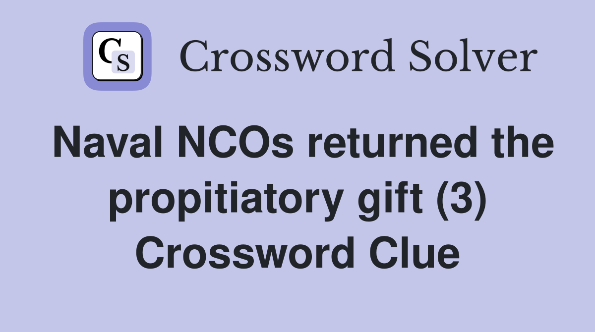 Naval NCOs returned the propitiatory gift (3) Crossword Clue Answers