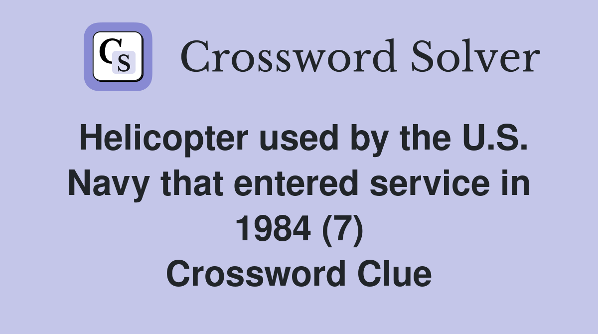 Helicopter used by the U S Navy that entered service in 1984 (7