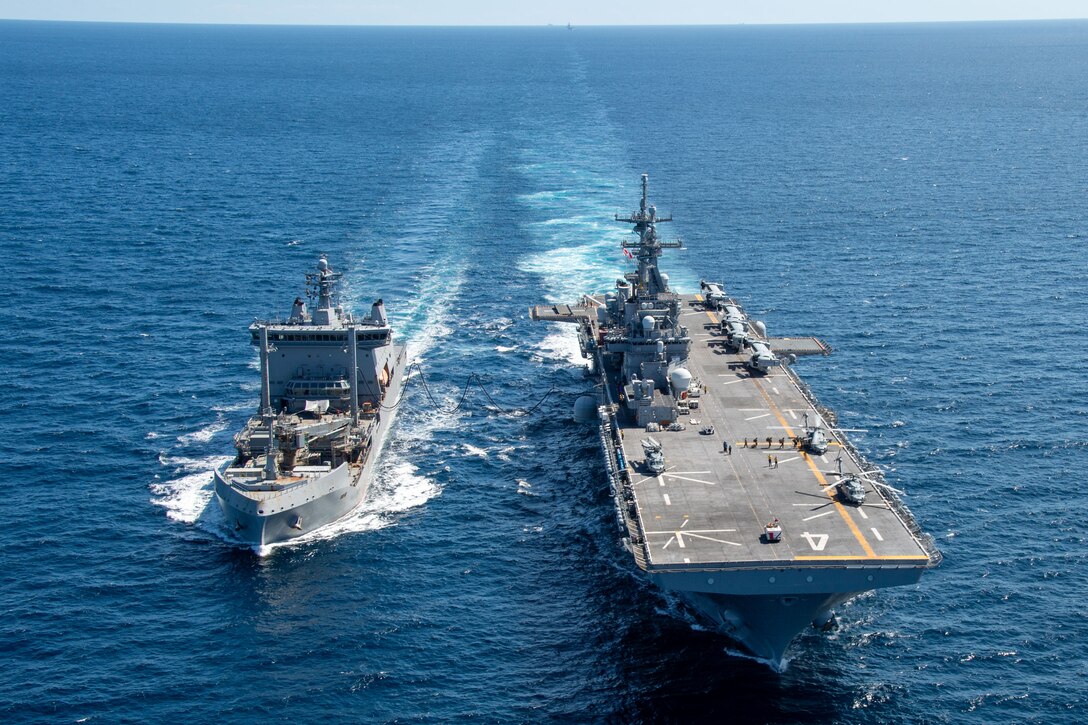 USS Boxer (LHD 4) Conducts Replenishment At Sea