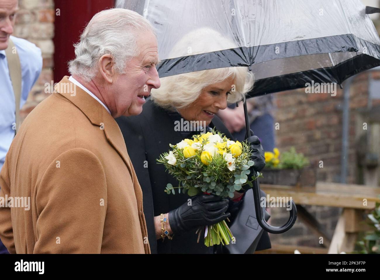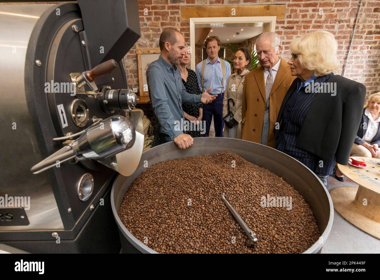 King Charles III and the Queen Consort during a visit to Talbot Yard