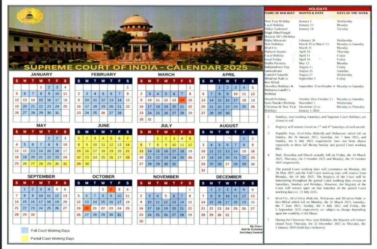 Supreme Court of India Calendar 2025: Key Details and Observances Law