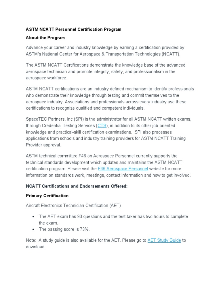 Here are some of the images for Ncatt Aet Certification that we found in our website database.
