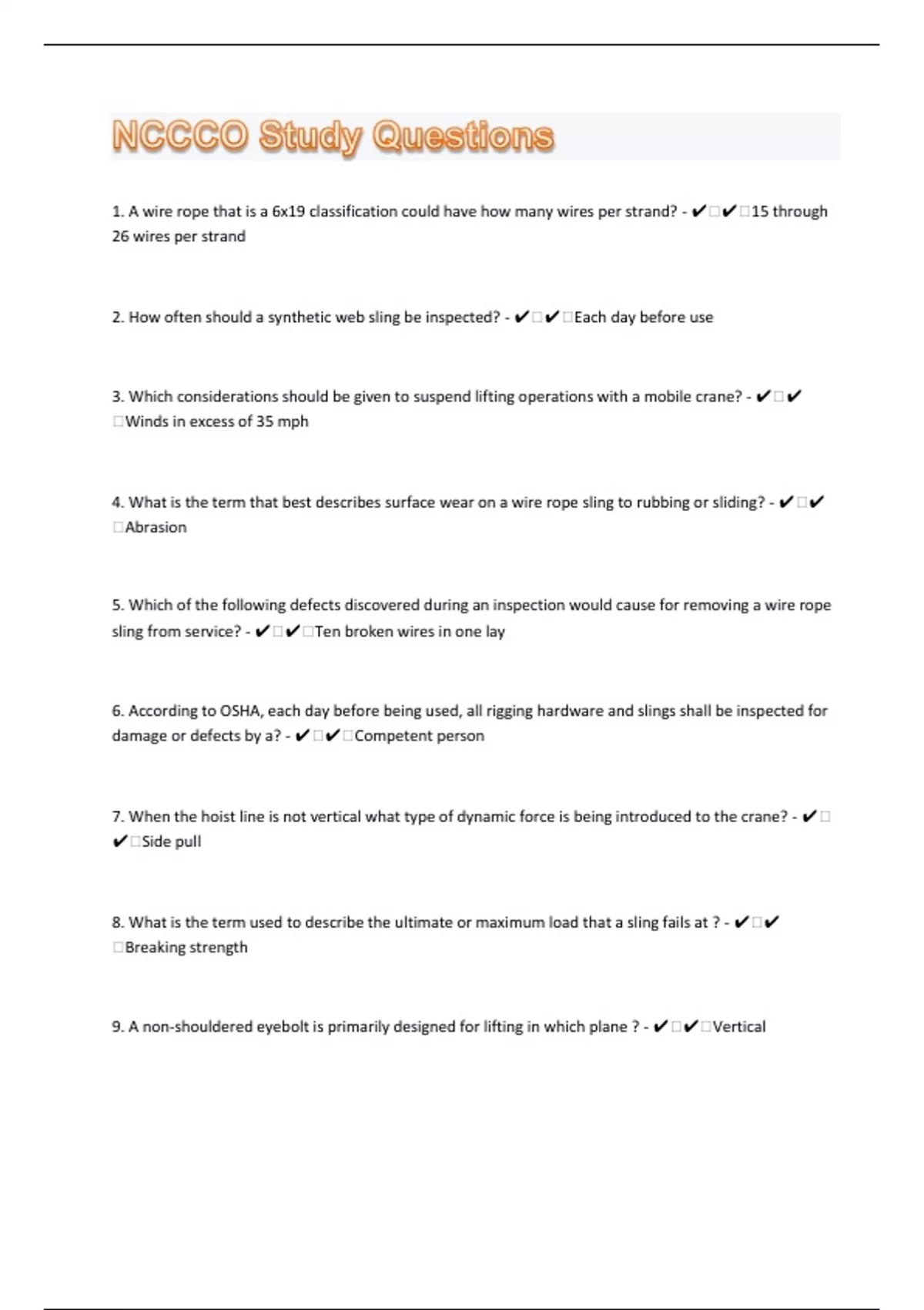 NCCCO Rigger 1 60 Study Questions With Correct Answers Nccco Stuvia US