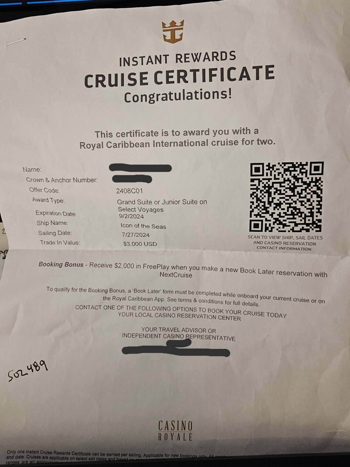 NEXT CRUISE Casino certificate Royal Caribbean Discussion Royal