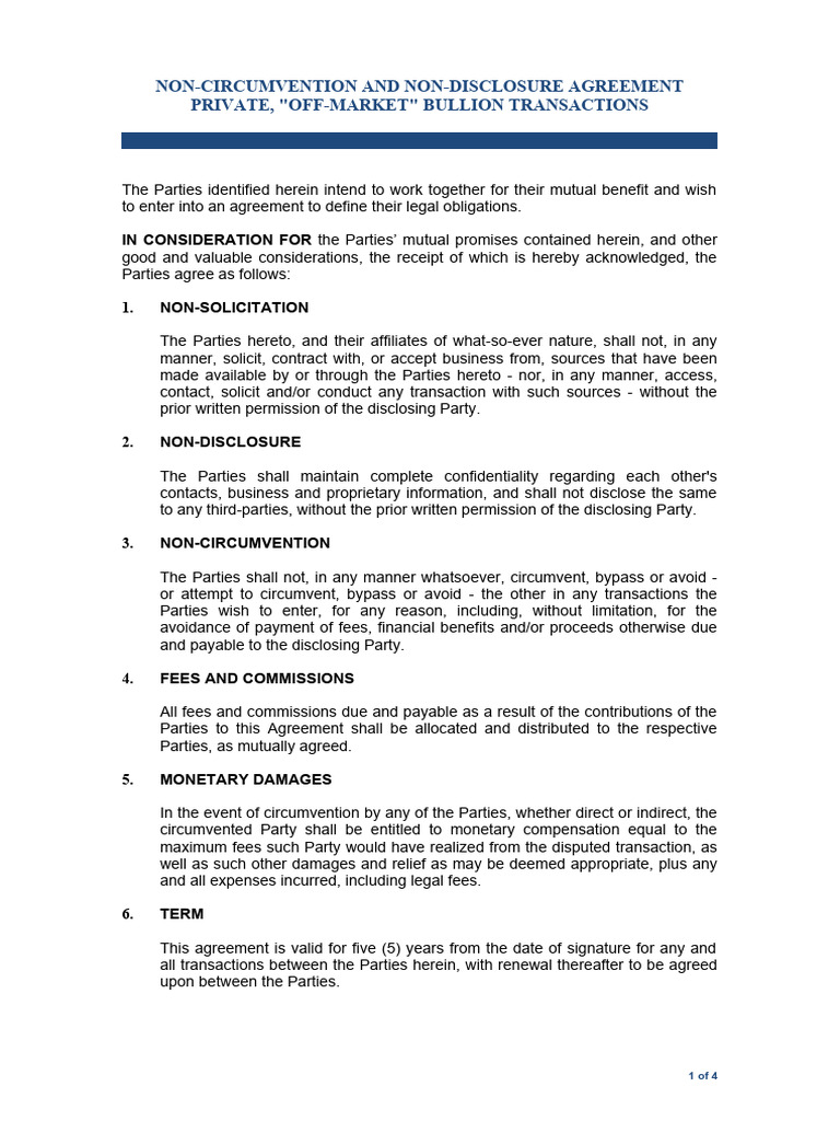 NCND Non Circumvention Non Disclosure Agreement Sample PDF Non