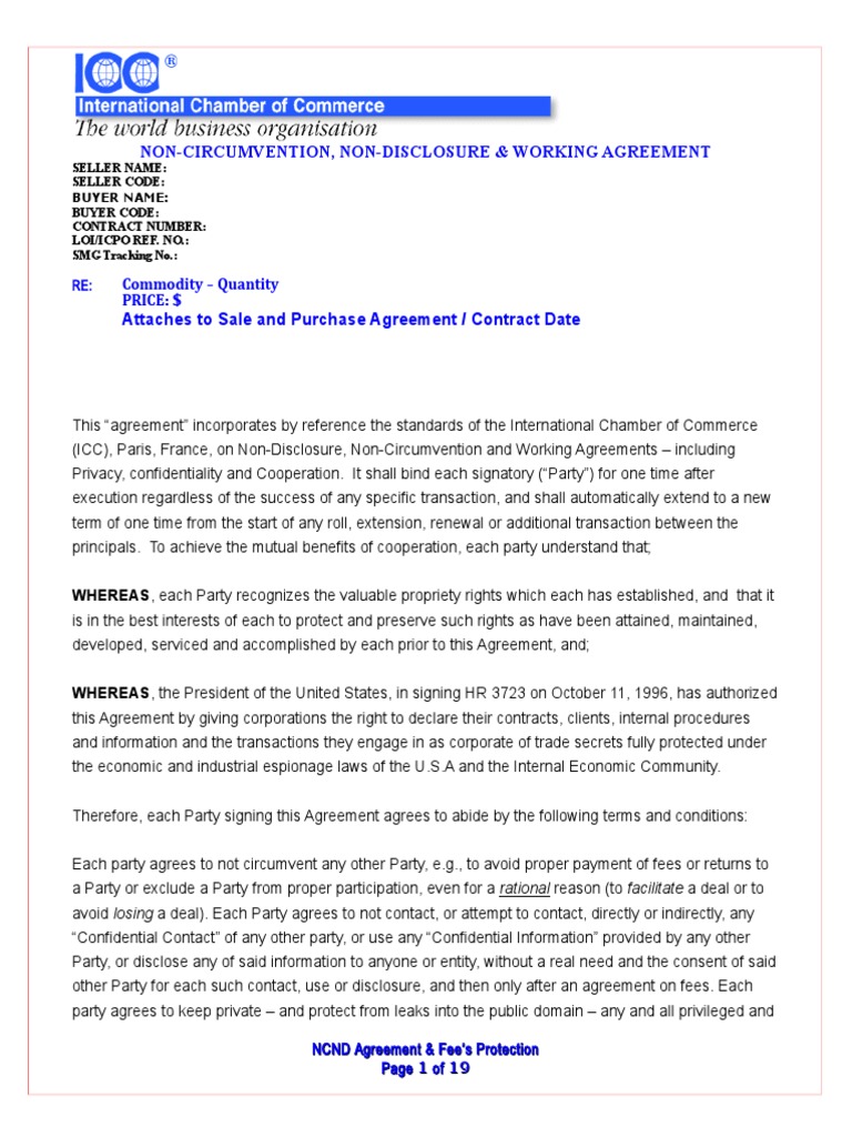 Contoh NCNDA Template ICC Financial Transaction Arbitration Free