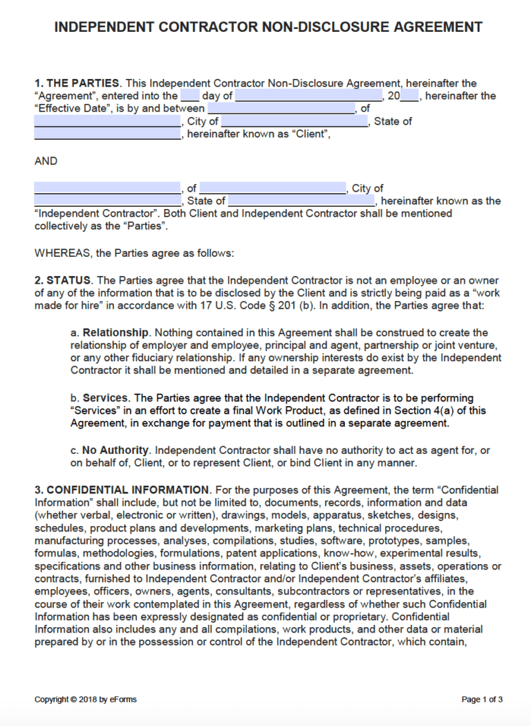 Free Independent Contractor Non Disclosure Agreement (Nda for Nda