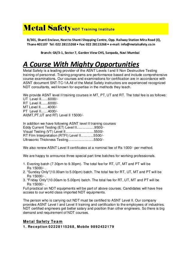 Asnt Level Ii Certification In Non Destructive Testing (ndt) at Best