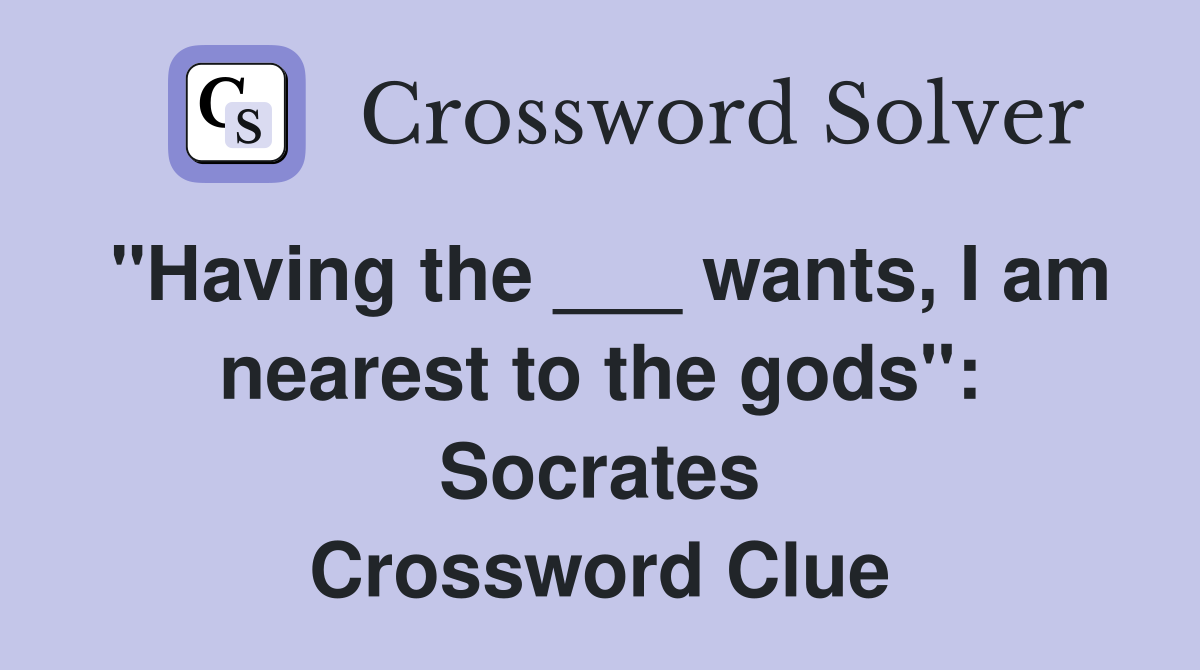 quot Having the wants I am nearest to the gods quot : Socrates Crossword
