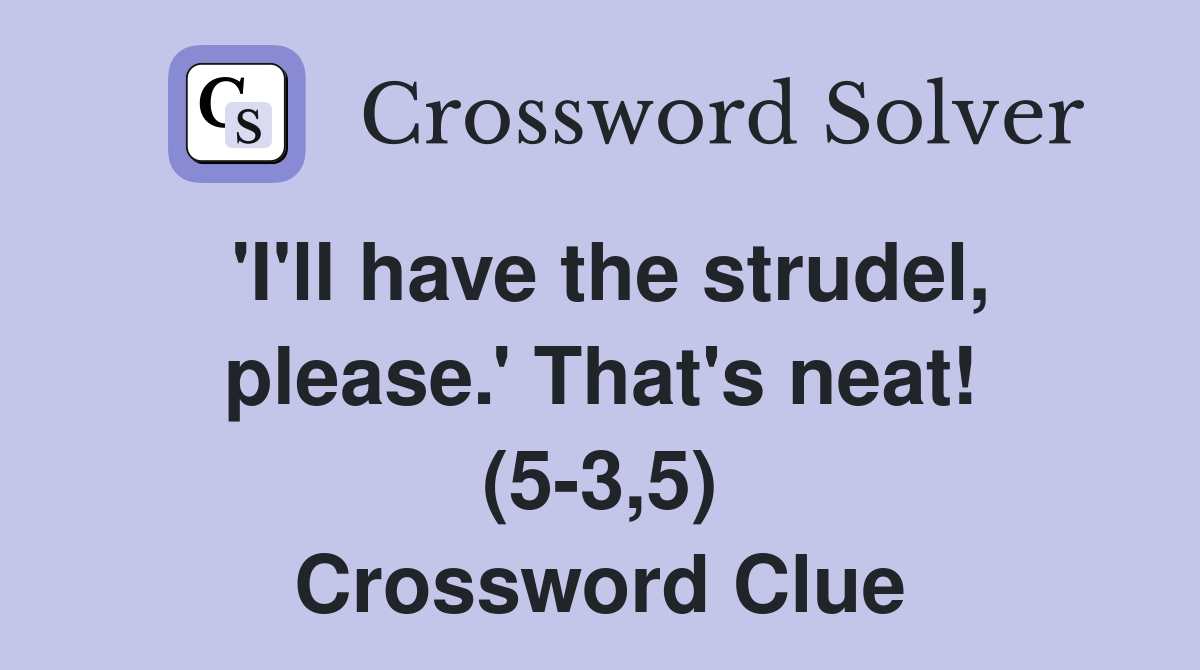 #39 I #39 ll have the strudel please #39 That #39 s neat (5 3 5) Crossword Clue