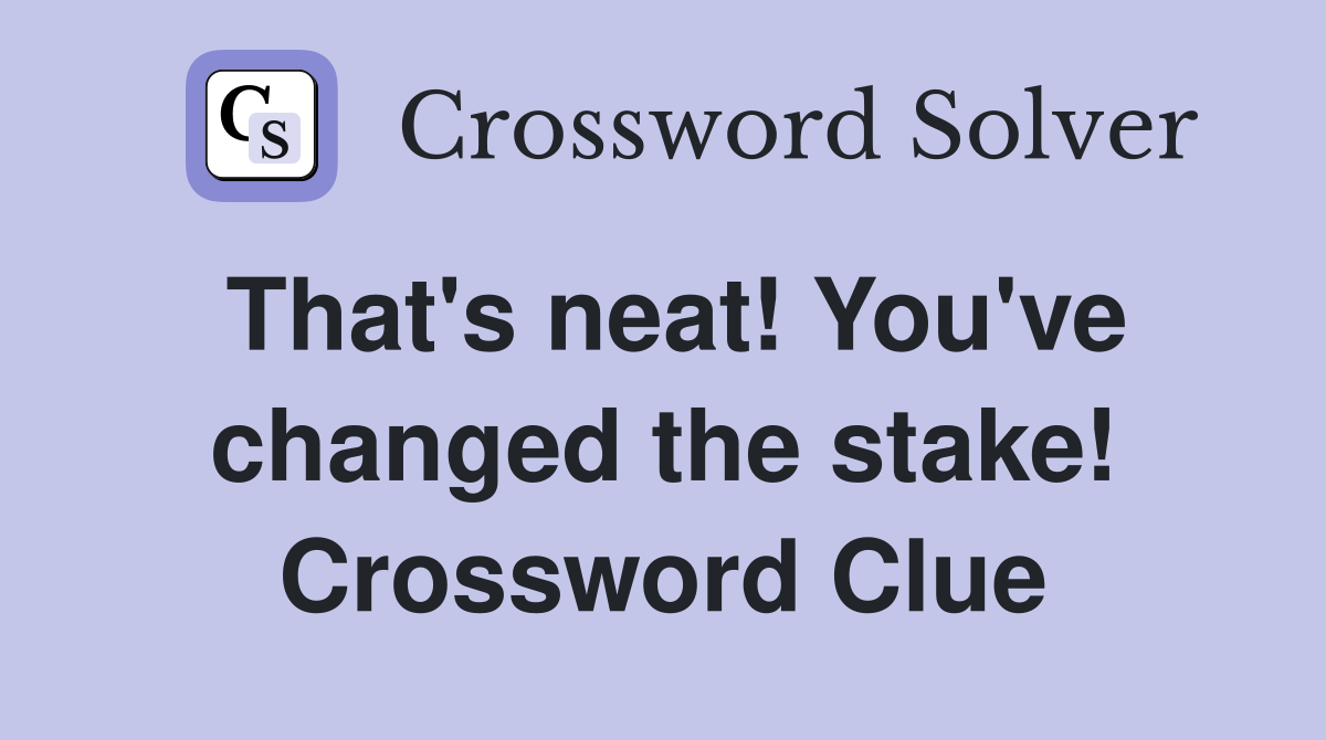 That #39 s neat You #39 ve changed the stake Crossword Clue Answers