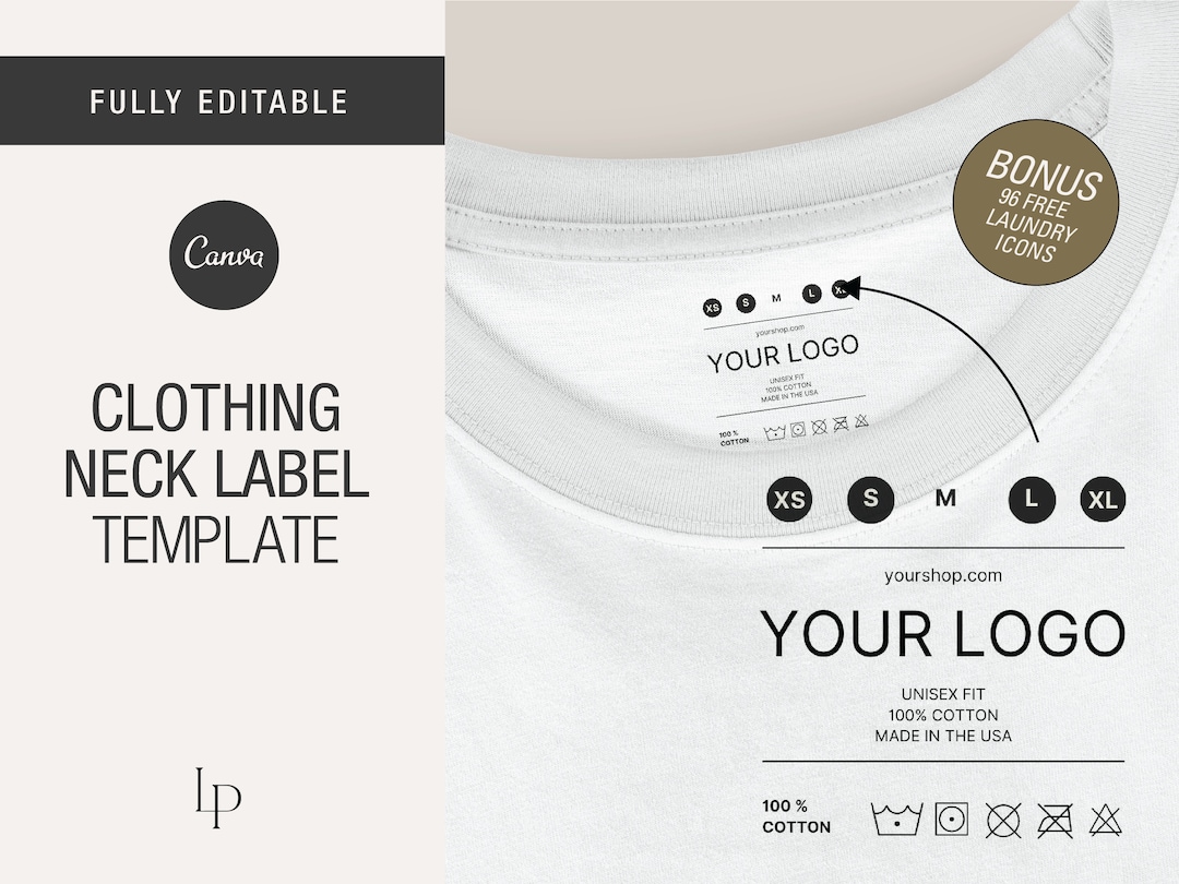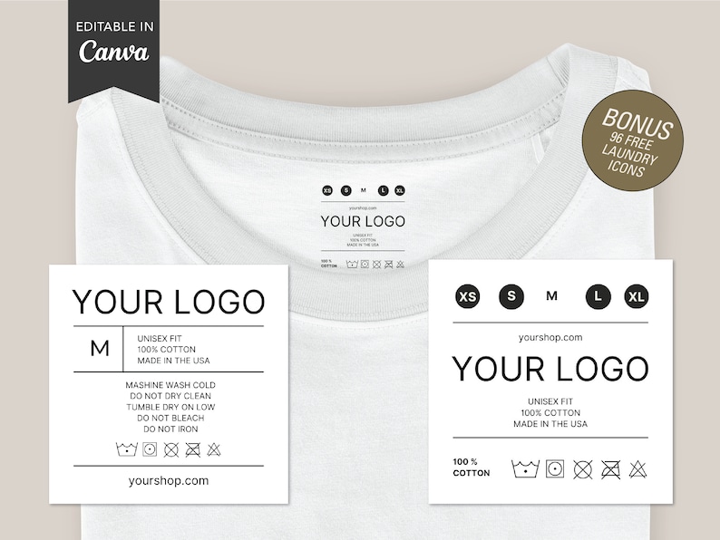 Neck Label Template Tagless Tag Canva Template Clothing Brand Etsy