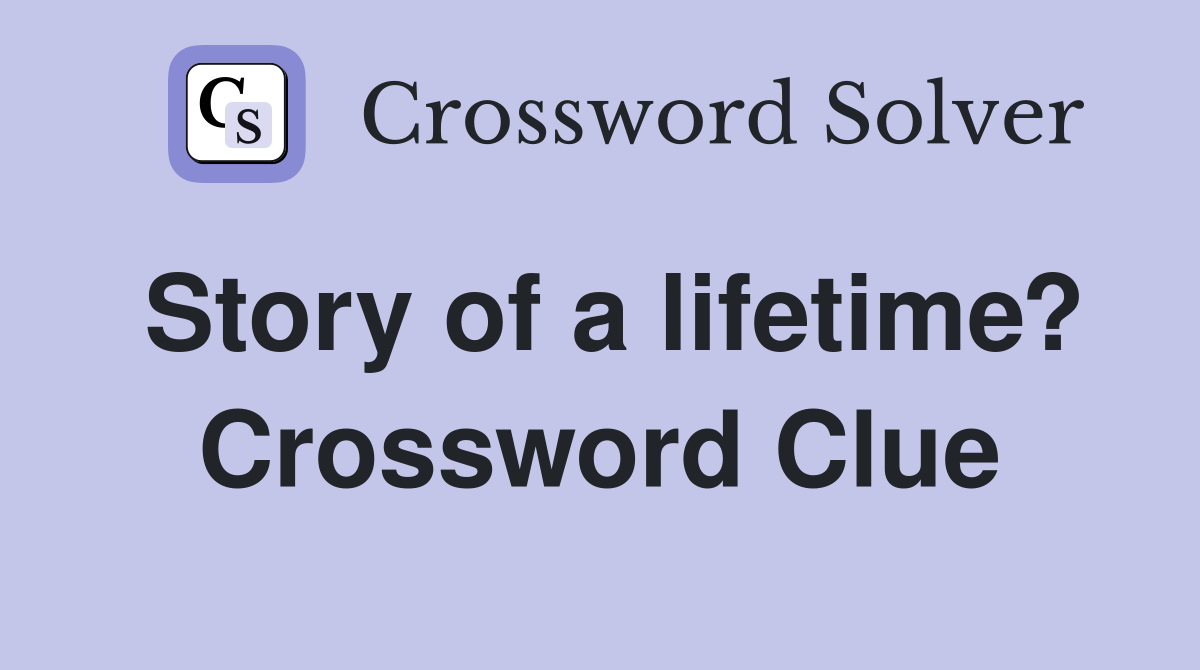 Story of a lifetime? Crossword Clue Answers Crossword Solver