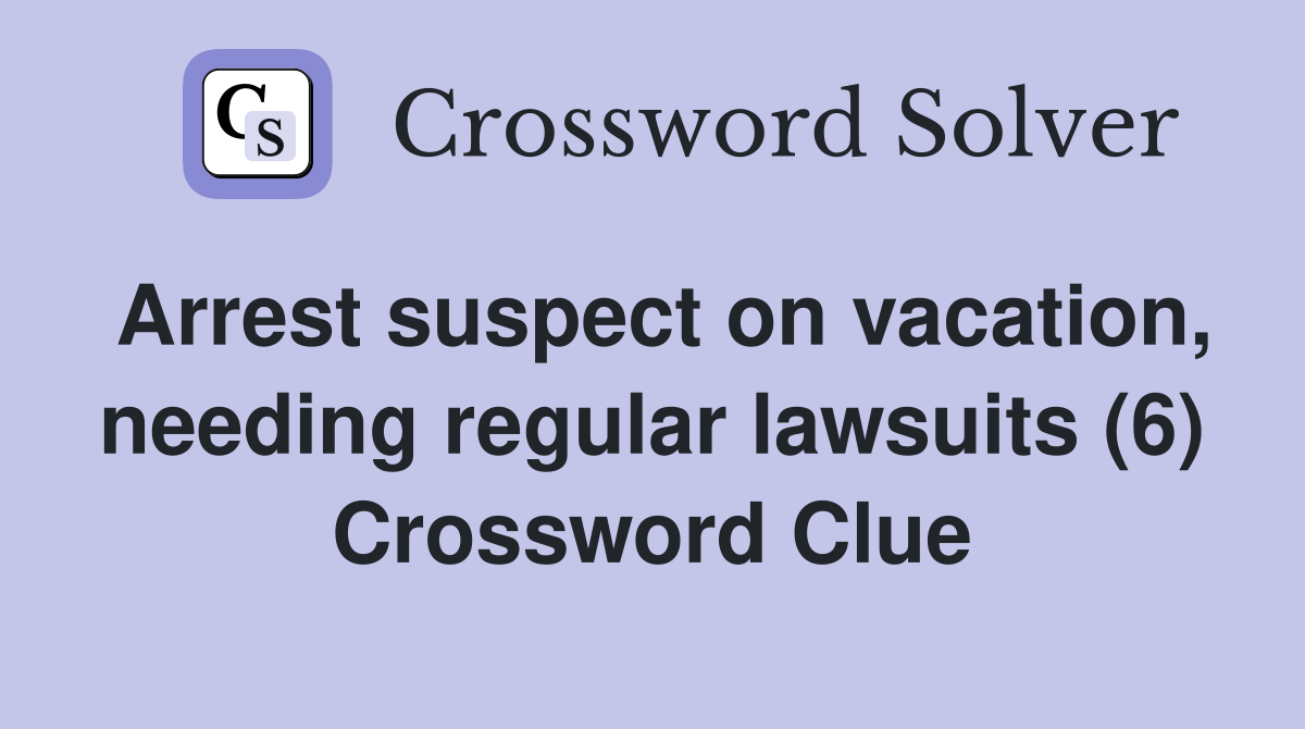 Arrest suspect on vacation needing regular lawsuits (6) Crossword