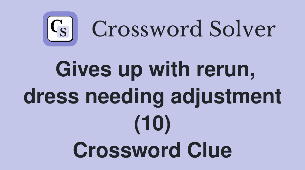 Gives up with rerun dress needing adjustment (10) Crossword Clue