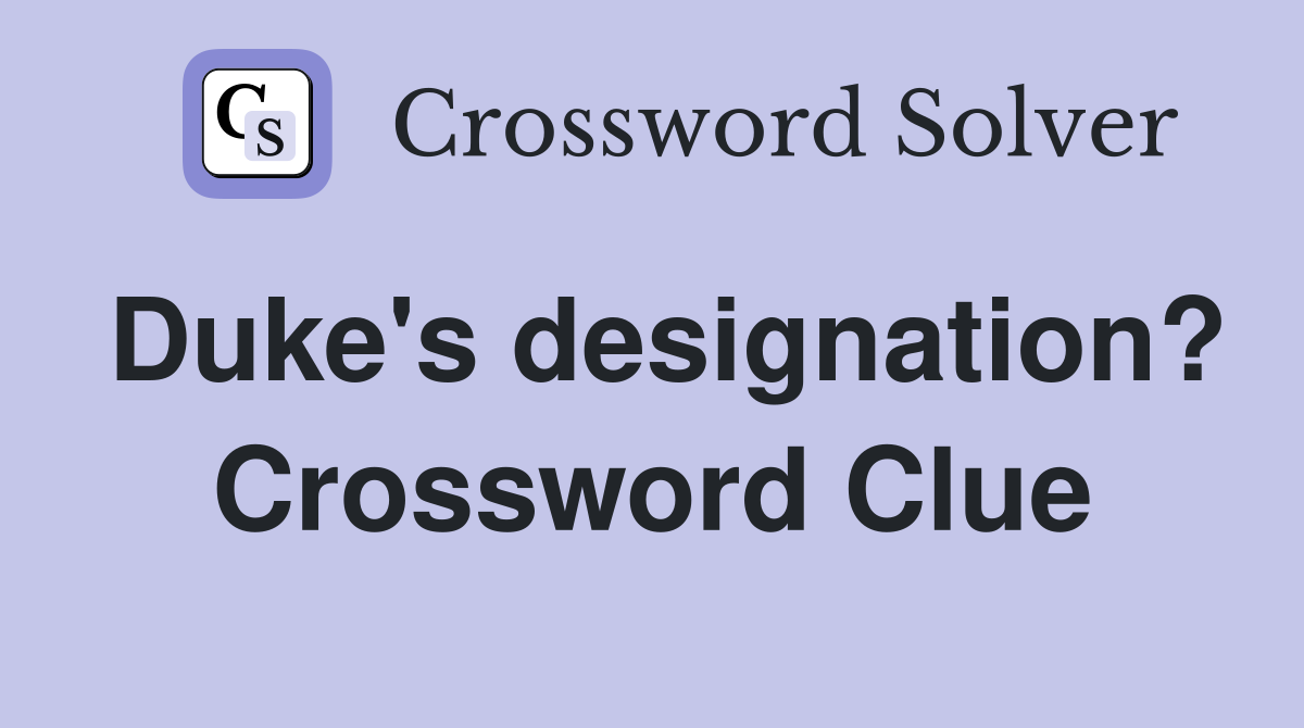 Duke #39 s designation? Crossword Clue Answers Crossword Solver