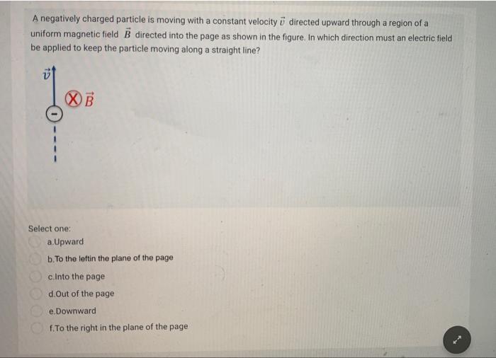 Solved : A negatively charged particle moving from left to