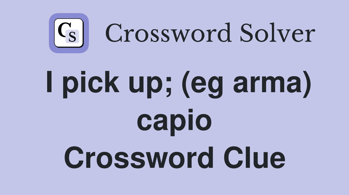 I pick up (eg arma) capio Crossword Clue Answers Crossword Solver