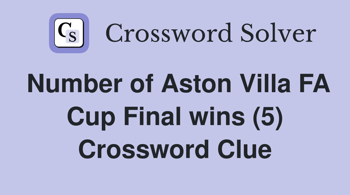 Number of Aston Villa FA Cup Final wins (5) Crossword Clue Answers