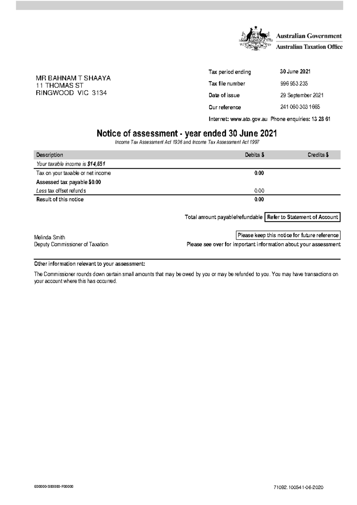 Notice of Assessment Year Ended 30 June 2022 PDF