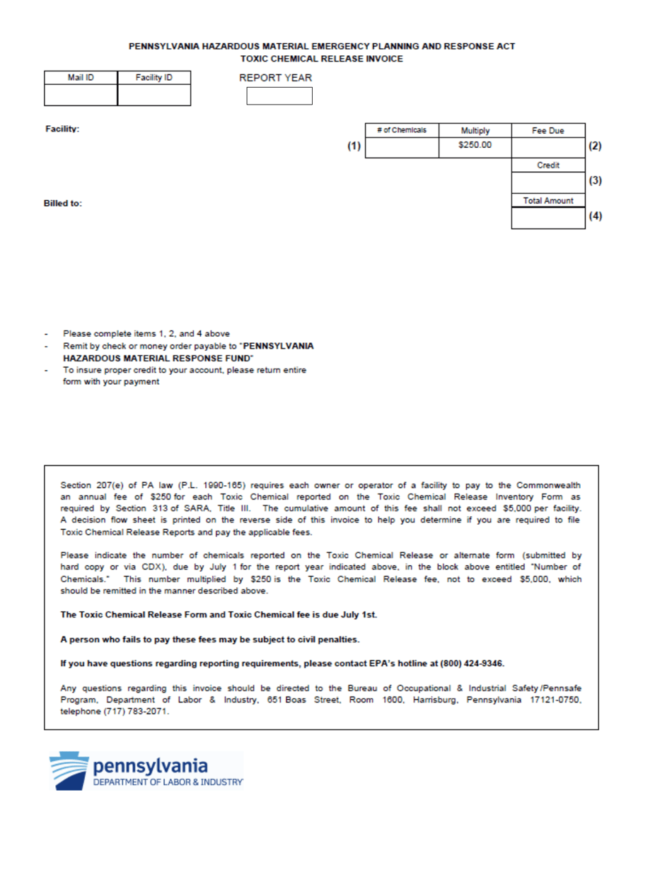 Pennsylvania Toxic Chemical Release Invoice Fill Out Sign Online and