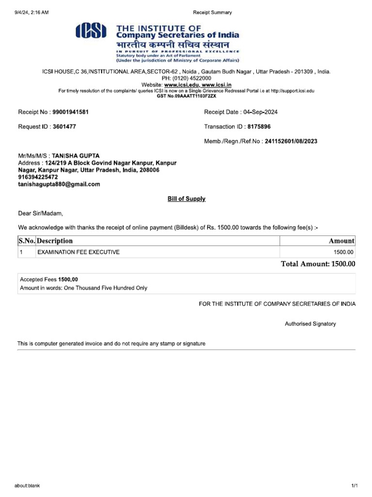 Duplicate Payment Receipt 2024 PDF