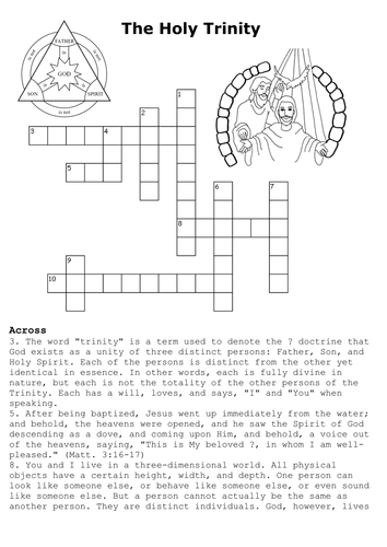 Mystery of the Trinity Crossword Childrens sermons Bible activities