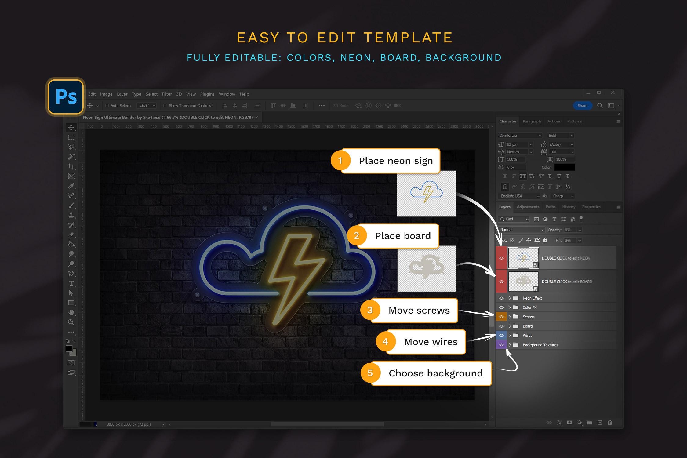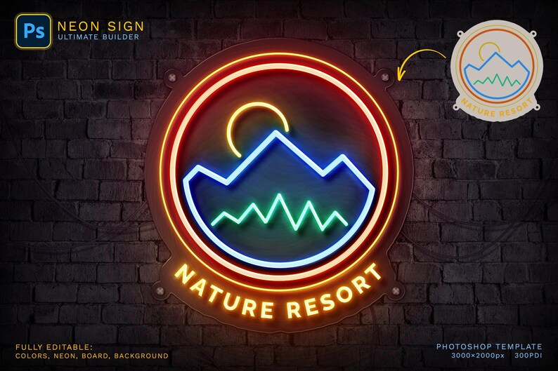 Neon Sign Photoshop Effect ~ PSD Template #279876528