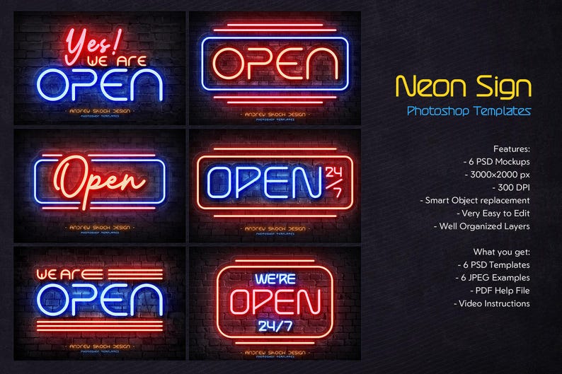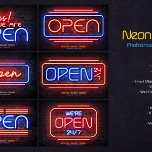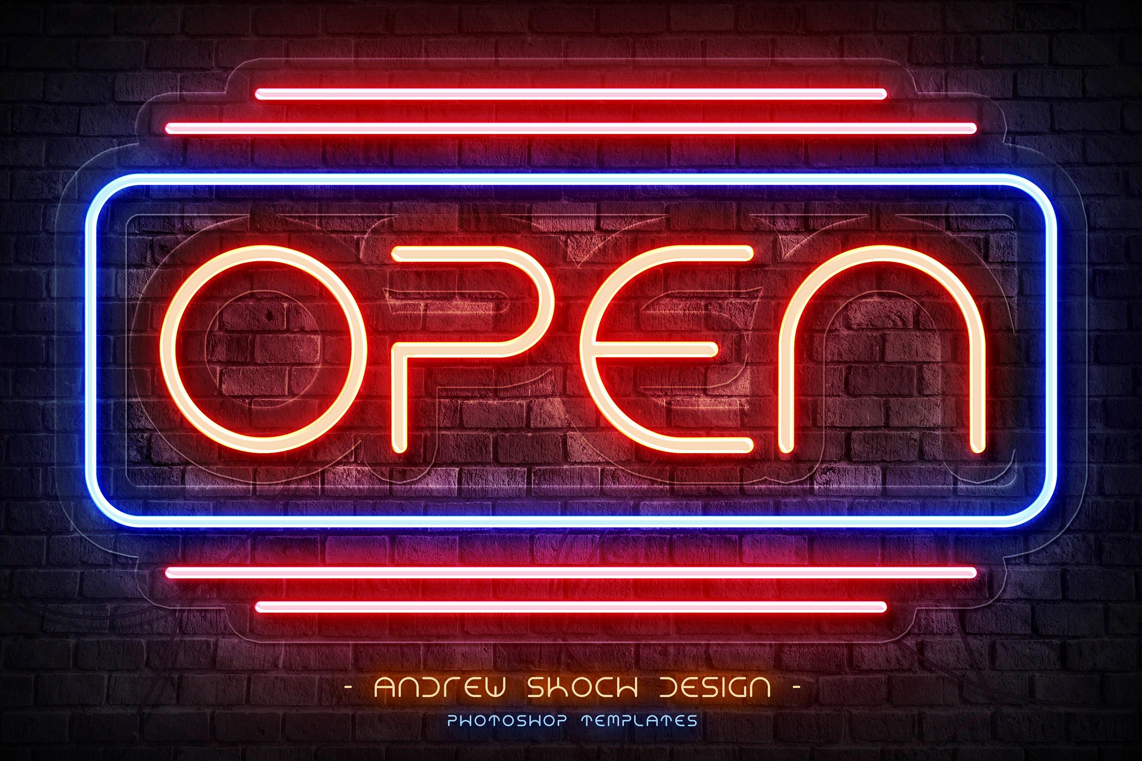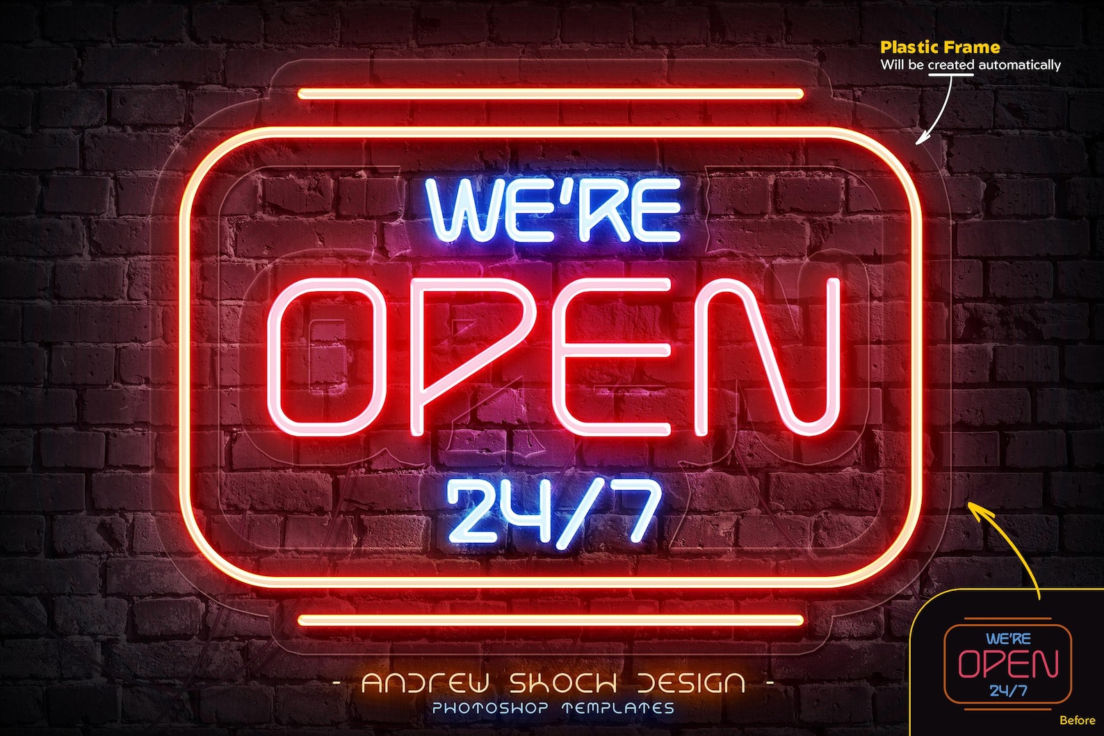 Open Neon Sign Photoshop Mockups Scene Generators ft open neon