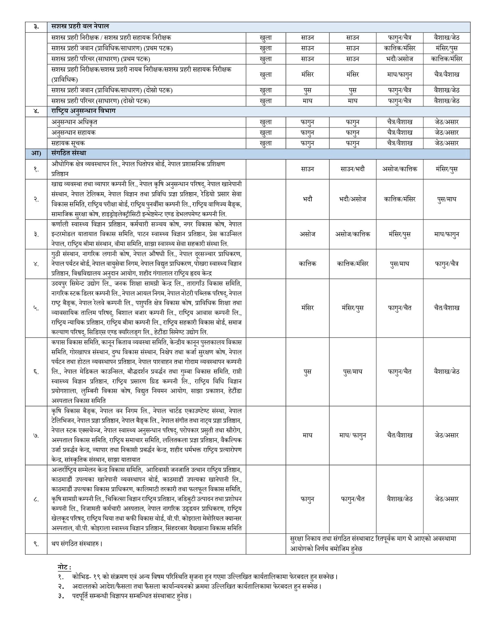 Lok Sewa Aayog Vacancy Yearly Calendar 2078 / 2079