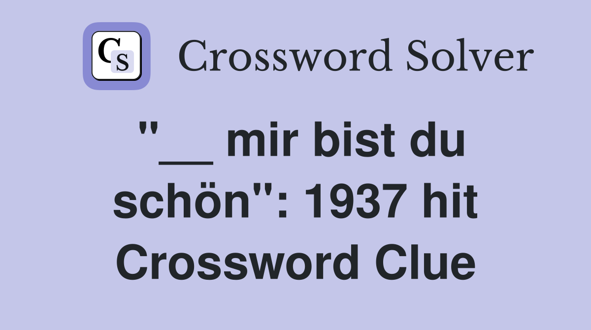 mir bist du schön quot : 1937 hit Crossword Clue Answers Crossword Solver