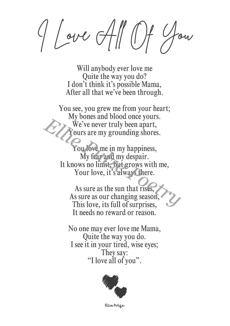 I Love All of You Printable Poem Motherhood Poem Mum Poem Etsy