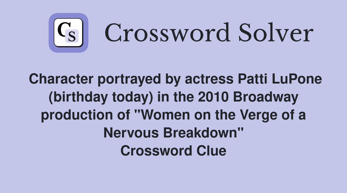Character portrayed by actress Patti LuPone (birthday today) in the