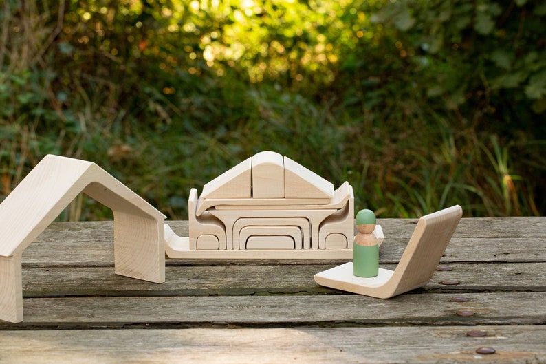Wooden House Play Set Waldorf Nesting Puzzle Waldorf Stacker Etsy