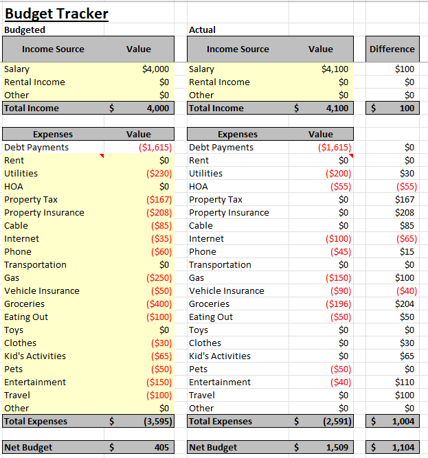 Win With Your Money Budget Net Worth Templates